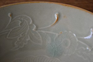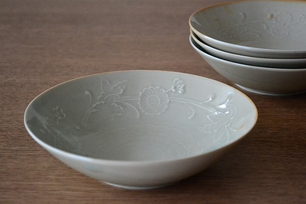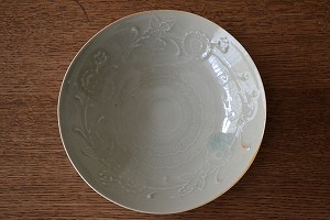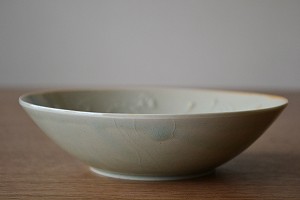 中国宗の時代の青磁の写しです。愛らしく気品のある文様が料理に花を添えます。