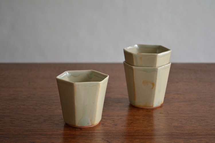 安齋新・厚子/青磁六角湯呑 \2,200+税