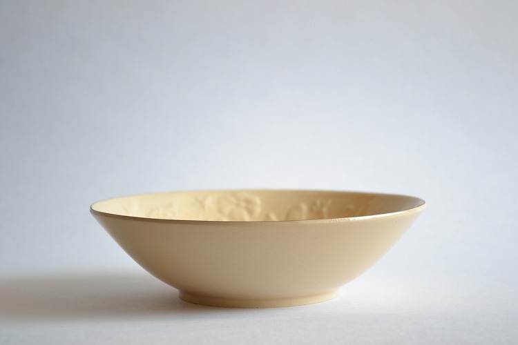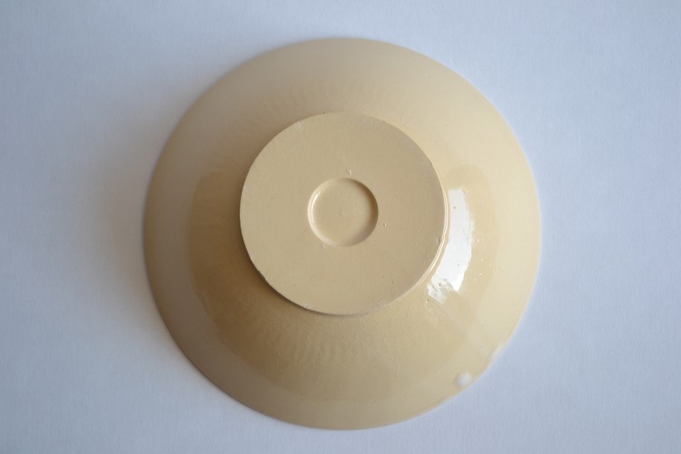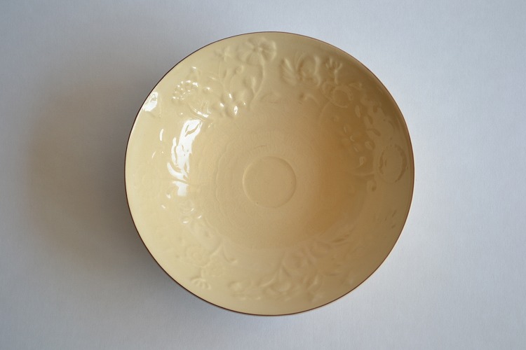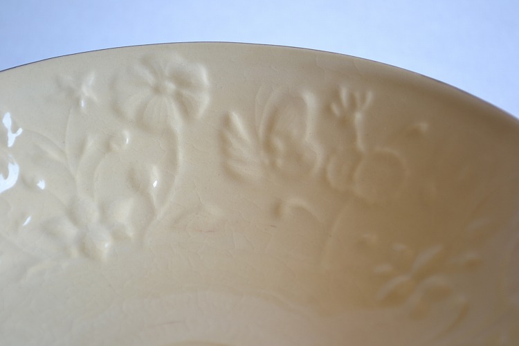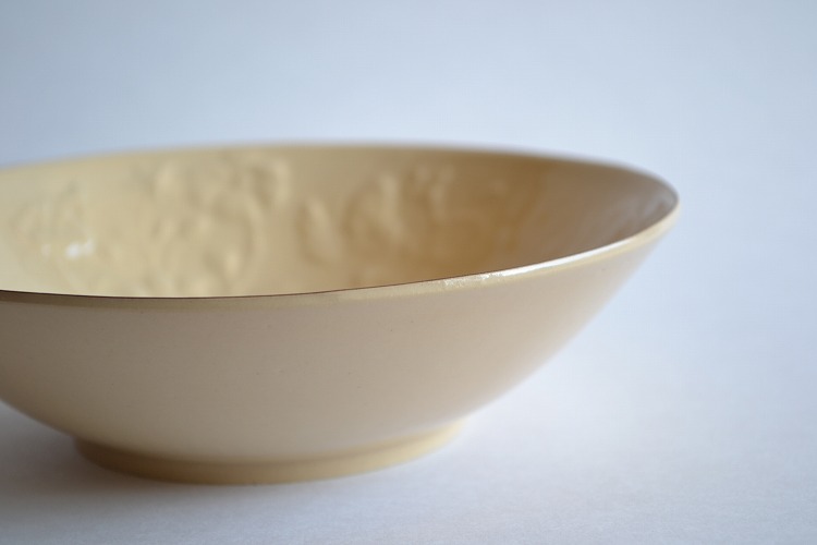 玉子色の素地に浮き出る模様。釉薬表面には貫入が入ります。