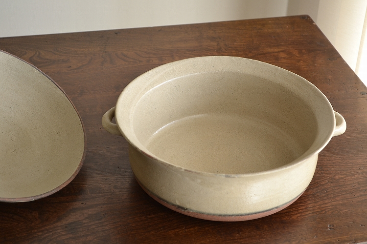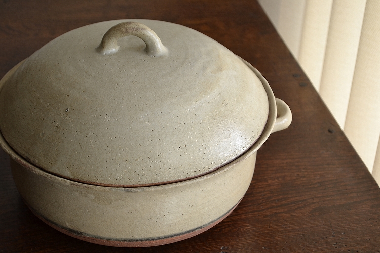 深田容子/グレー粉引土鍋(大)B \20,000+税 画像現品のみのご紹介です