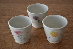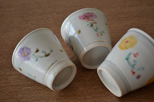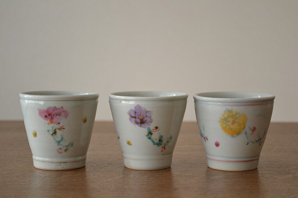 伊藤聡信/色絵安南湯呑(ピンク、紫、黄色)