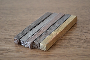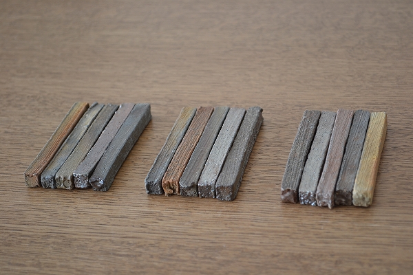 シンプルな棒状の箸置きも薪窯焼成だと表情がこんなにも豊かです。