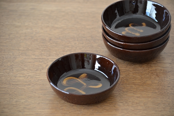 白い器が多くなりがちなテーブルの上で、ちょっとしたアクセントになってくれそうな小鉢です。