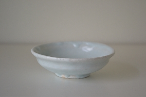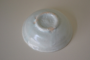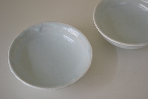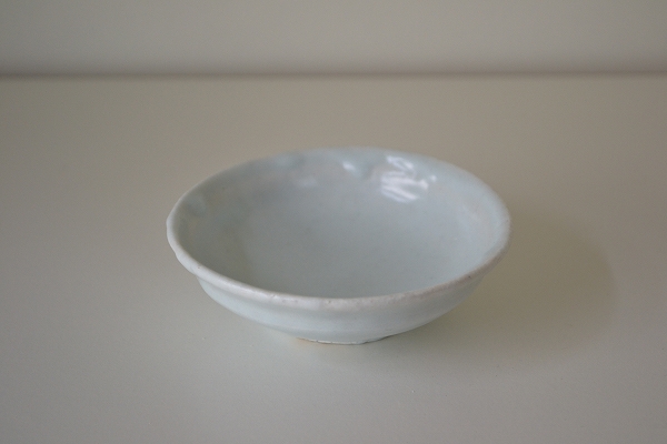 青白い釉薬が印象的な半磁器の豆皿です。