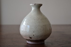 ぷっくらと膨らんだ丸い形が愛らしい粉引徳利。