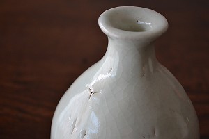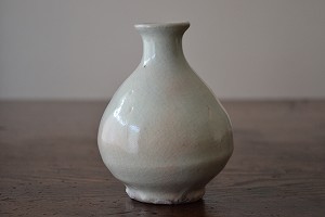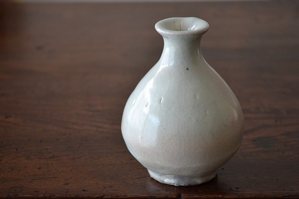 厚く掛かった釉薬が乳濁し、とろんとやわらかな印象を与える粉引徳利。