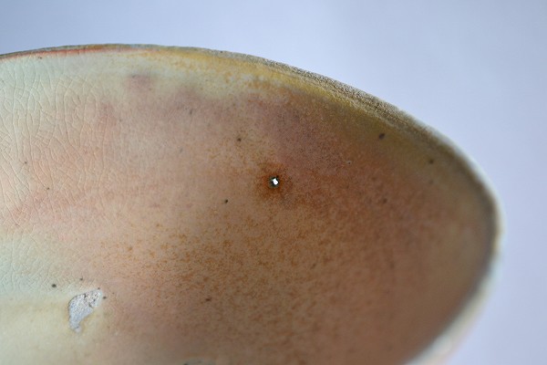 cは胎土中の不純物が焼け飛んで出来たゴマ粒大の穴が一つ空いています(下の画像を参照)。