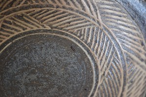 薄く釉薬がかかっていて、表面は焼き〆の器のようにザラツキのある仕上がりですが、