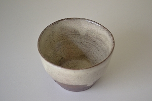 白化粧土と釉薬を掛け残したところが三段階にグラデーションしている村木さんの定番のそば猪口。