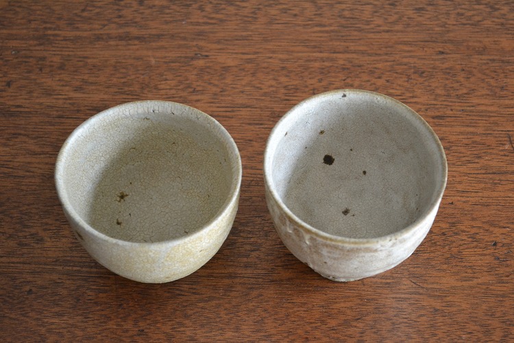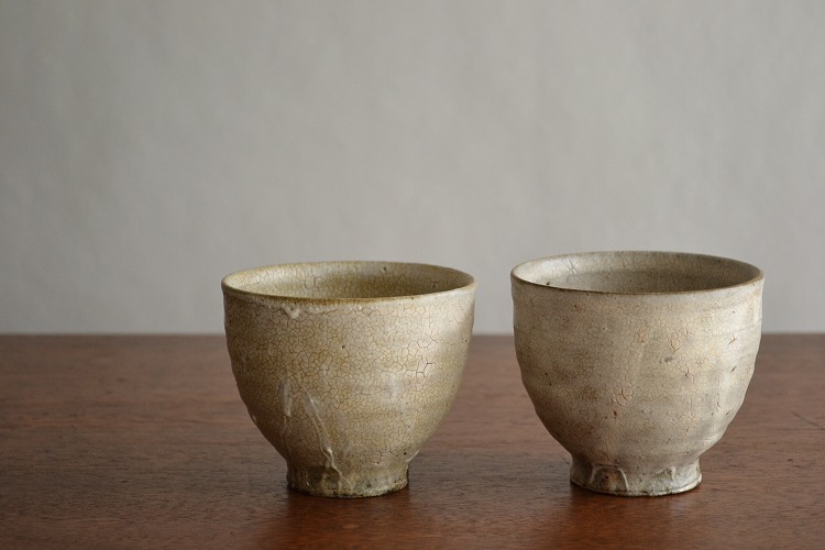 尾形アツシ/ヒビ手粉引フリーカップ(薪) 各\3,000+税 画像現品のみ(左から、A、B)