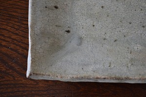 細かくヒビ割れた化粧土を、スモーキーな薄緑の灰釉がやさしく覆い、とても素敵な雰囲気です。