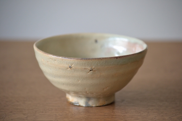 薪窯で焼かれたベージュ調の粉引碗です。