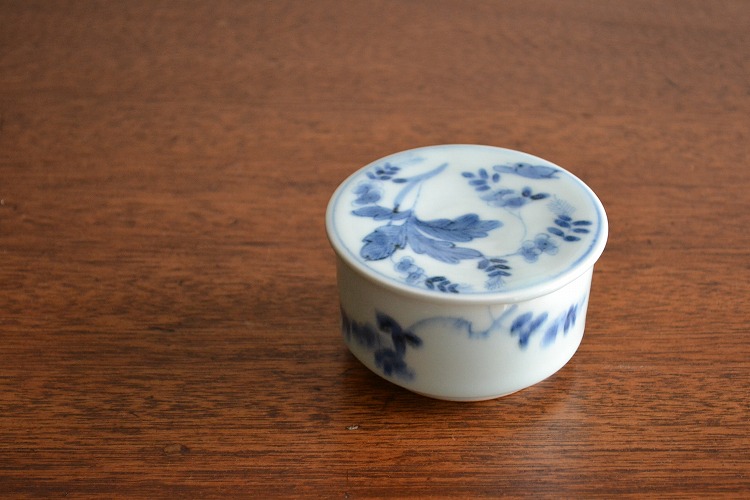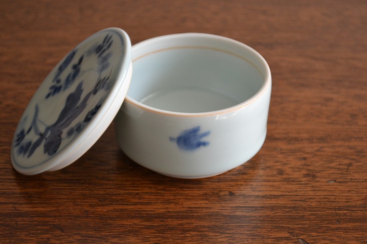 佃煮や干菓子などを少し入れておくのに重宝する蓋物。上品でかわいらしい一品。