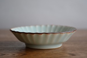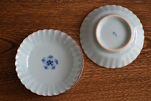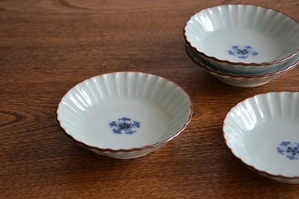型打ちのしのぎと縁に打った鉄できりっと引き締まった上品な小皿。繊細な花模様も効いています。