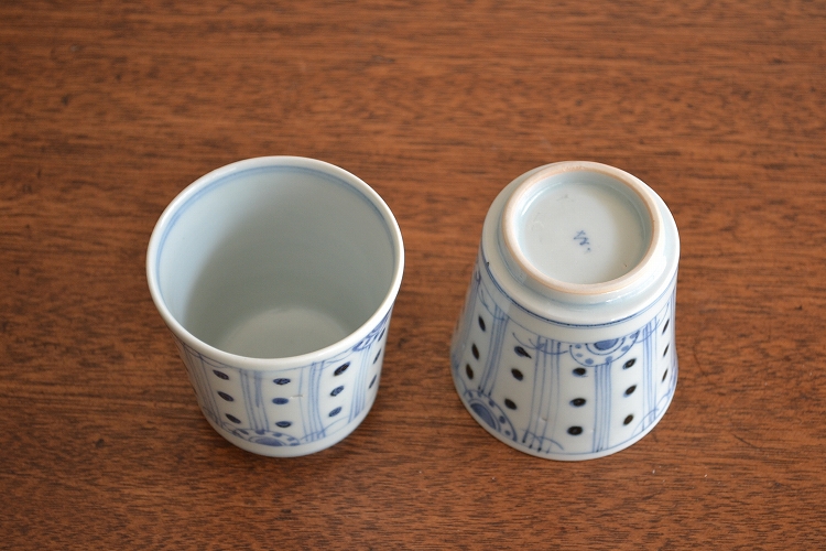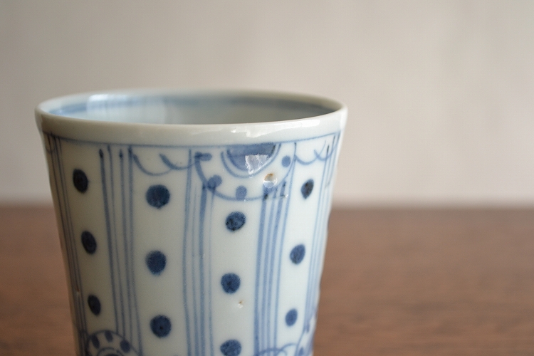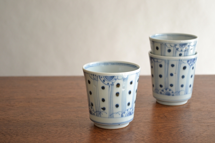/子持ち縞に水玉模様湯呑