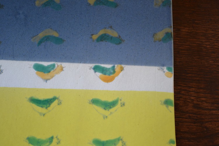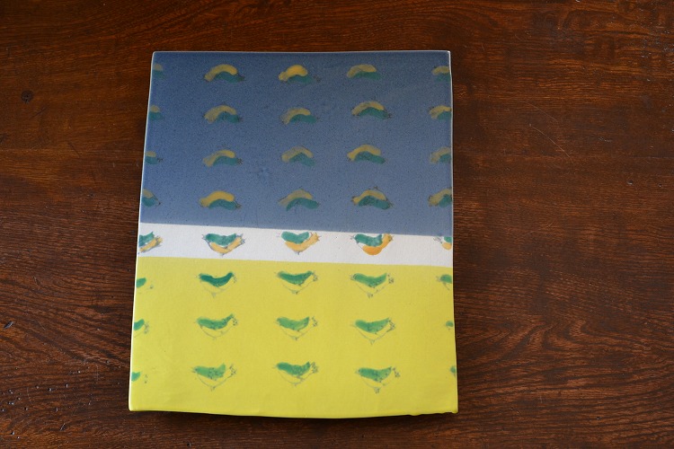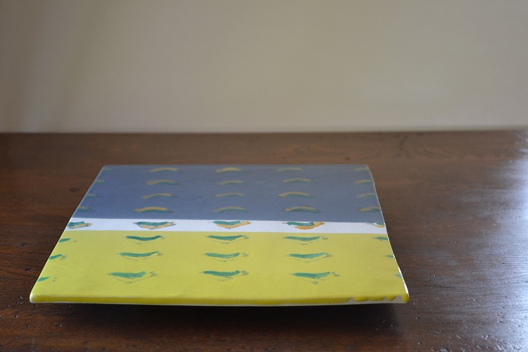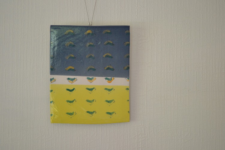 青と黄色のコントラストが鮮やかな陶板に一目惚れ。