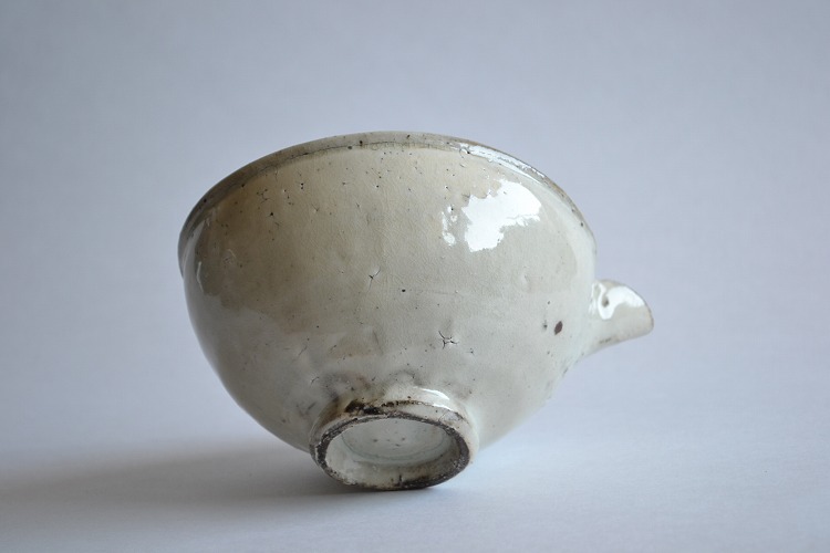 良く溶けた釉薬が潤いある上品な艶で覆割れた粉引鉢。