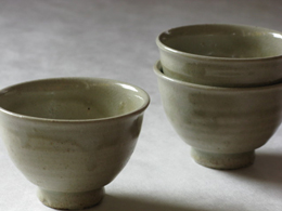 薪ストーブの灰を利用して作った灰釉が淡い黄緑色の皮膜となって覆っています。