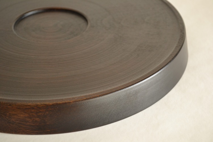 木地に灰を摺り込んだ後に拭き漆が施されているため、通常の拭き漆に比べ色が濃くなっています。