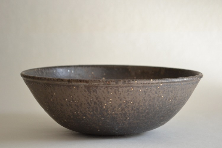 カーキを含んだマットな黒い肌に石の粒々が表情を添えています。