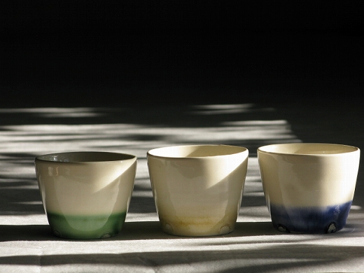 | 2.紅毛手(淡黄)猪口・小(緑・黄・青) 各\2,520 各一点のみ |