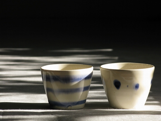 | 6.紅毛手猪口・大(左:白、右:淡黄) 各\3,990 |