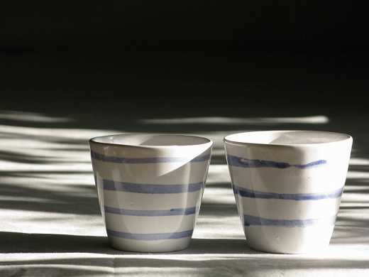 | 4.紅毛手(白)猪口・やや高(ボーダー) 各\3,150 |