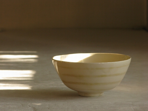 | 11.紅毛手(淡黄)4.5寸碗(茶ボーダー) \3,990 一点もの |