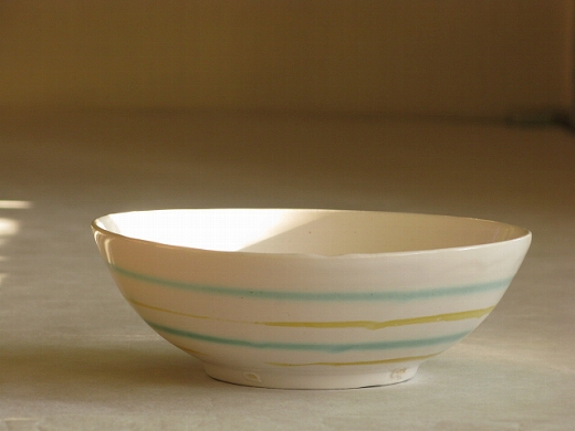 | 17.紅毛手(淡黄)6寸鉢・碗形(青ボーダー) \6,300 |