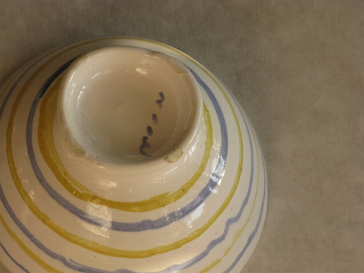| 13.紅毛手(白)カフェオレボウル(青黄ボーダー) \5,040 一点もの |
