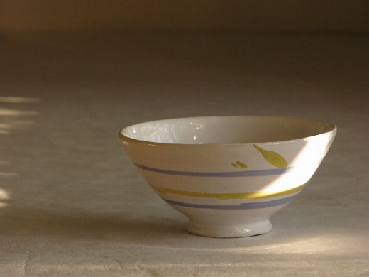 | 14.紅毛手(白)カフェオレボウル(青黄ボーダー) \5,040 一点もの |