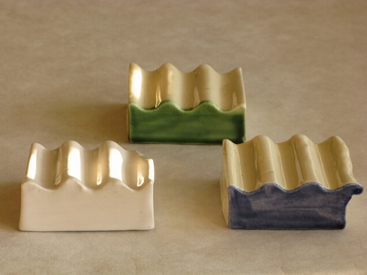 | 1.左から、紅毛手(白)波形、紅毛手(淡黄)波形(緑)、紅毛手(淡黄)波形(青) \3,150 各一点もの |