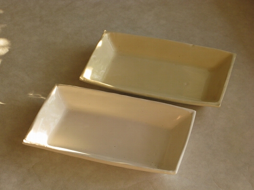 | 20.紅毛手長方皿・大(手前:白 sold、奥:淡黄 残1) \5,040 |